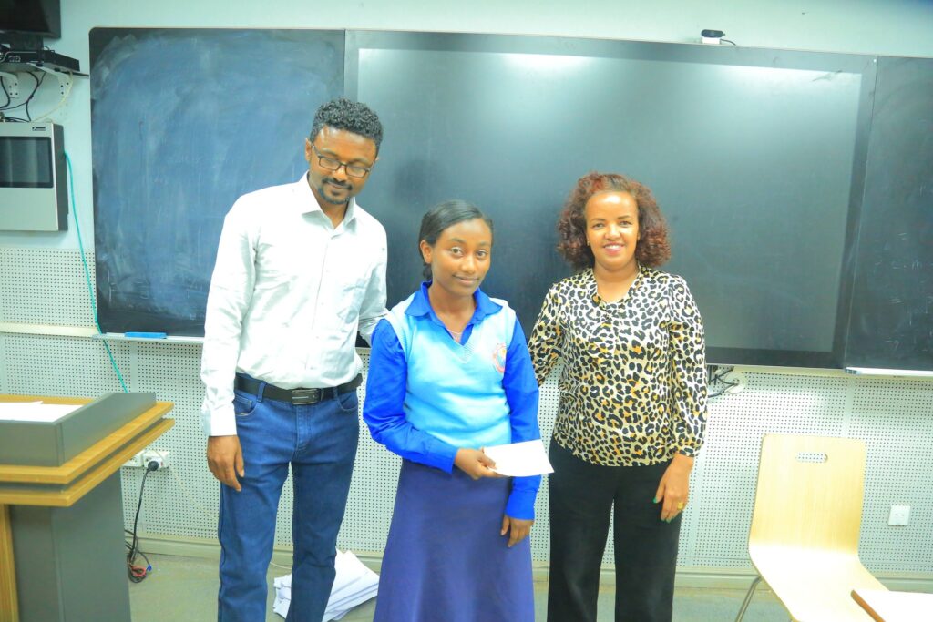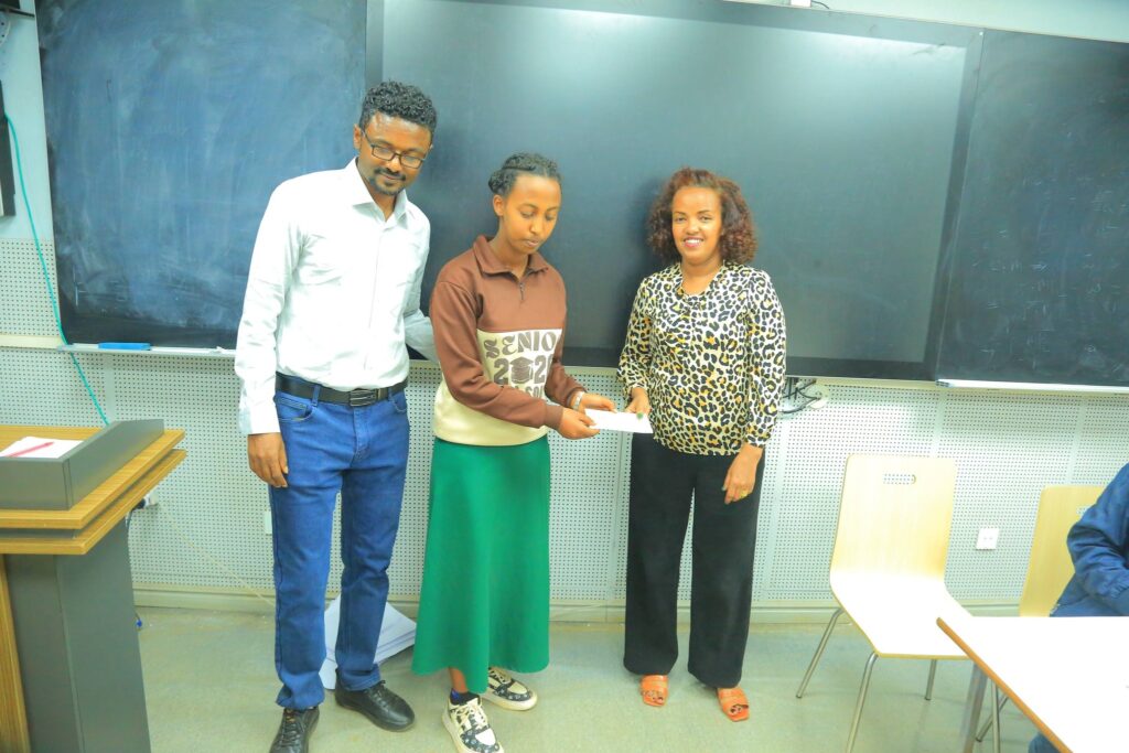 The program concluded with closing remarks delivered by Dr. Endalkachew Mosisa, INDMET Project Coordinator. In his address, he appreciated the dedication of the students, teachers, and organizers and reaffirmed the project’s commitment to expanding outreach programs that connect secondary education with higher learning and practical innovation. During the closing ceremony, the top three students in each of the three major categories – Engineering and Technology, Natural Sciences, and Mathematics – were awarded small academic support grants in recognition of their achievements.